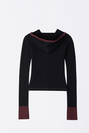 Contrasting fabric on sleeve cuffs, hem, and hood opening