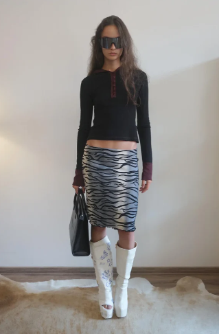 Female model is 174cm, bust 30", waist 23", hip 34", wearing size S.