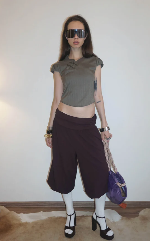 Cap-sleeve qipao-inspired top